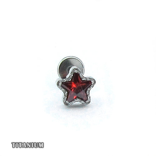 Titanium sa CZ zvijezda crveni kristalom veličine 5mm. Debljina posta 1,2mm, dužina posta 6mm. Unutrašnji navoj na postu za lakše postavljanje vrha nakita. Može da se koristi kao pirsing za uvo.