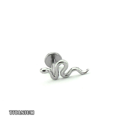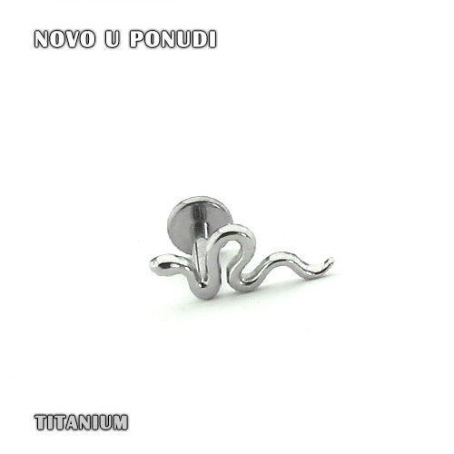 Titanium sa malom zmijom, dužina posta 6mm, debljina posta 1,2mm. Unutrašnji navoj na postu za lakše postavljanje vrha nakita. Super zanimljivi nakit za uvo. Može da se koristi kao pirsing za uvo.