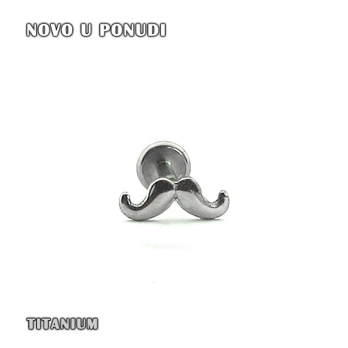 Titanium sa brkovima veličine 7mm. Debljina posta 1,2mm, dužina posta 6mm. Unutrašnji navoj na postu za lakše postavljanje vrha nakita. Može da se koristi kao pirsing za uvo.