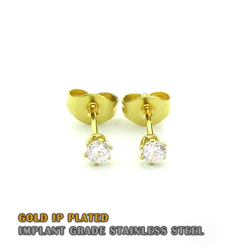 Hirurški čelik IP pozlata sa Cubic Zirconia kristalom, veličina 3mm.