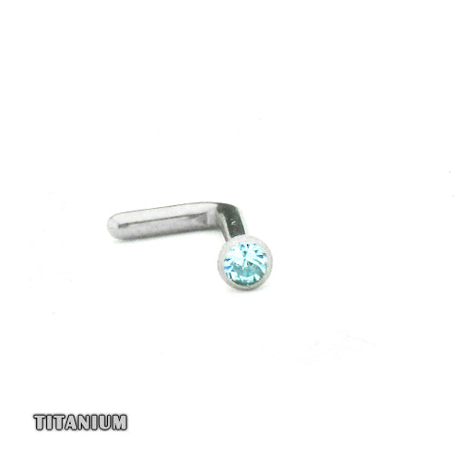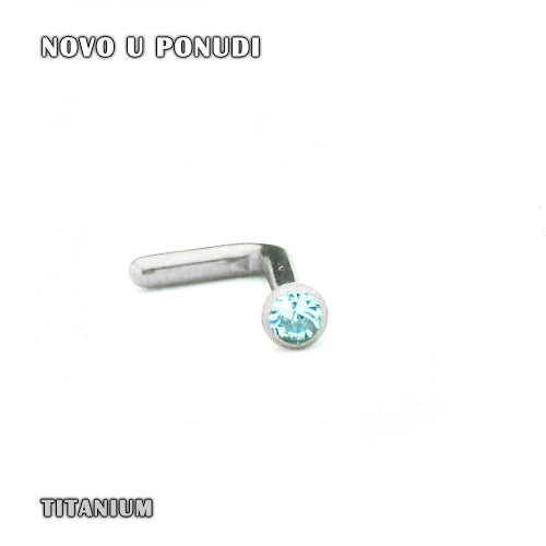 Titanium L bend, sa svijetlo Plavim CZ kristalom veličine 1,5mm. Osovina savijena u L oblik za sigurnije nošenje nakita u nosu. Debljina osovine 1mm. Diskretan nakit visokog kvaliteta.